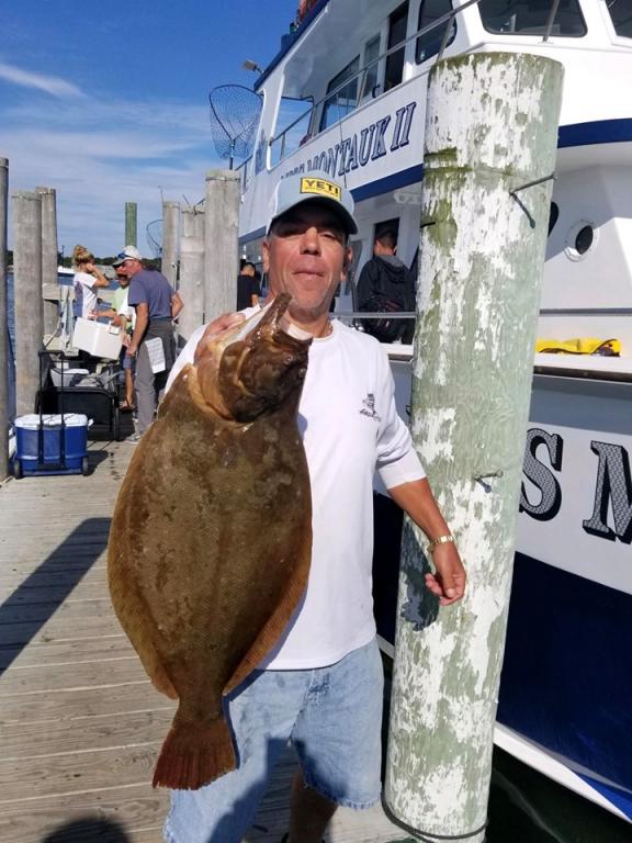 Onboard the Miss Montauk II 9-14-2019 ~ Daniel caught the biggest Fluke I have ever netted or seen in my life! 17.90 LB DOORMAT FLUKE OF A LIFETIME!! Congratulations Daniel!!!! FLUKETASTIC!! WOW!! Walter had an 11.16 lb DOORMAT too ~ Awesome! 9-15 ~ A tough bite today, we’ll be back at it tomorrow. 9-16 ~ Donny had the pool winning DOORMAT Fluke today weighing in at 10.06 lbs ~ Awesome! Runner up was Frank’s 9.74 lber ~ Sweet! It wasn’t a slammer today, but definitely picked up from yesterday. Full Day Fluke Daily 7am - 4pm ~ Open Boat www.missmontauk.com #631-668-1545 |