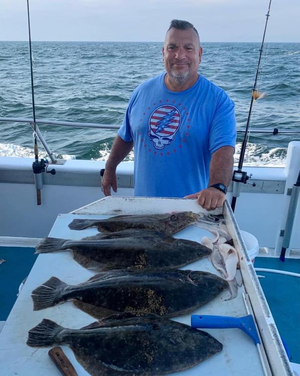 ![]() Onboard the Miss Montauk II ~ Jim & John tied for had today’s pool winning Fluke ~ Very Nice! Full Day Fluke 7am-4pm Daily $130 per Angler ~ LIMITED TO 45 ANGLERS by RESERVATION #631-668-1545