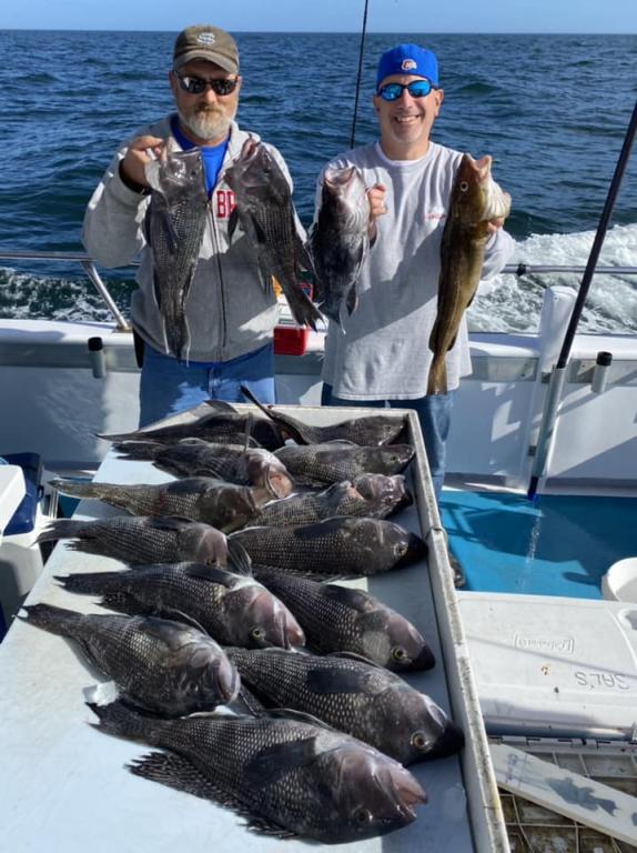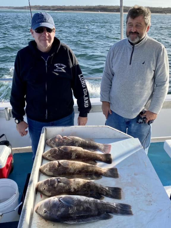 ![]() Onboard the Miss Montauk II ~ Alan had yesterday’s pool winning BlackFish & Sal had today’s ~ Awesome! Good fishing today! We do have room on tomorrow’s trip & Monday ~ take advantage of this gorgeous weather! Fall Fishing ~ BlackFish, SeaBass, Cod 6am - 4pm Daily. $155 per Angler ~ LIMITED TO 30 ANGLERS by RESERVATION #631-668-1545