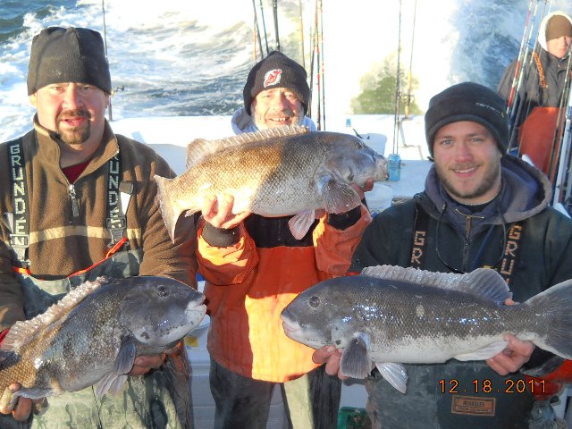 Congrats to Mikey for boating his personal best Tog today and great job on the release! Glad you caught it on your Grumpy Custom! Had a blast today with the boys. Fishing was slow but we picked and plucked. As Mike said, the Momoi cost me my fish and it was a big one to say the very least (I don't wanna know how big).. Never had my seeker bend like that on a tog. Oh well I'll get her Tuesday.. Thanks again Mikey for organizing these past two trips and I look forward to winner next year PUOSU.