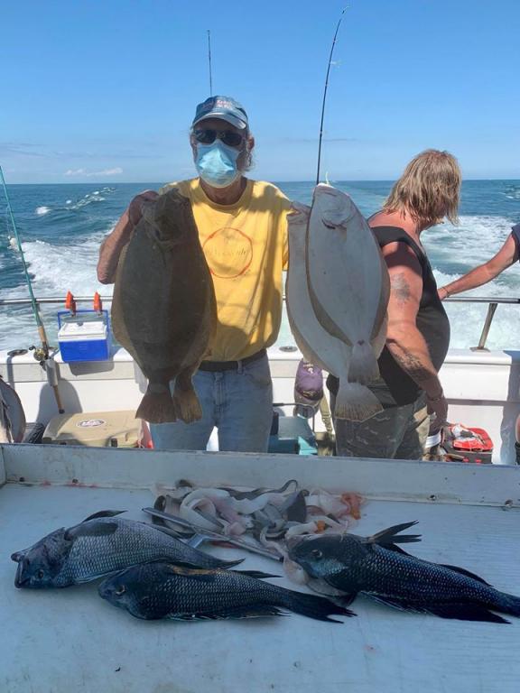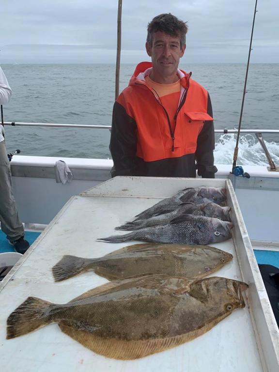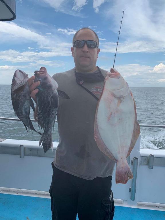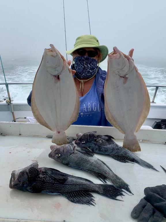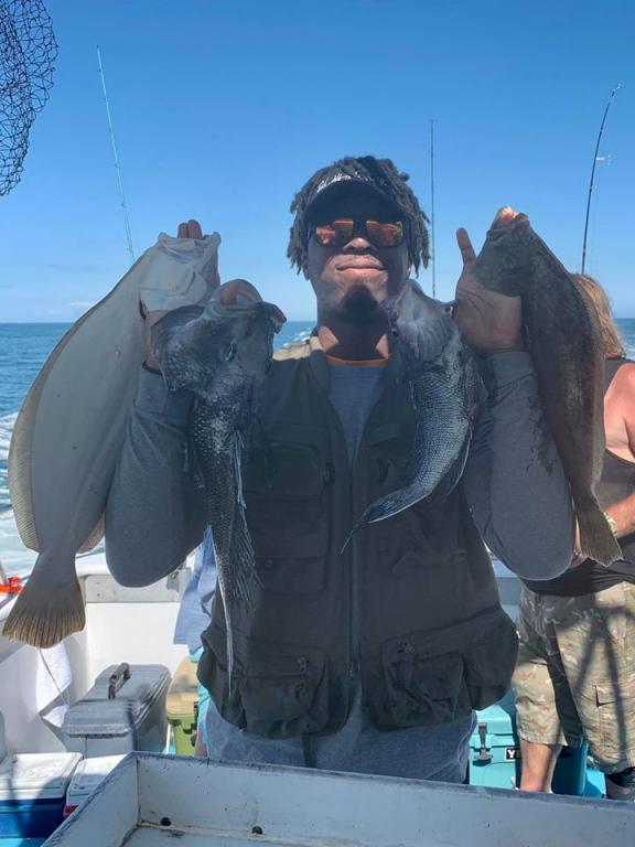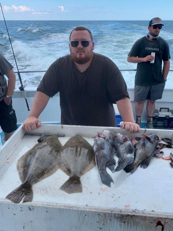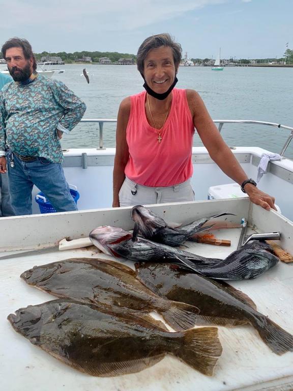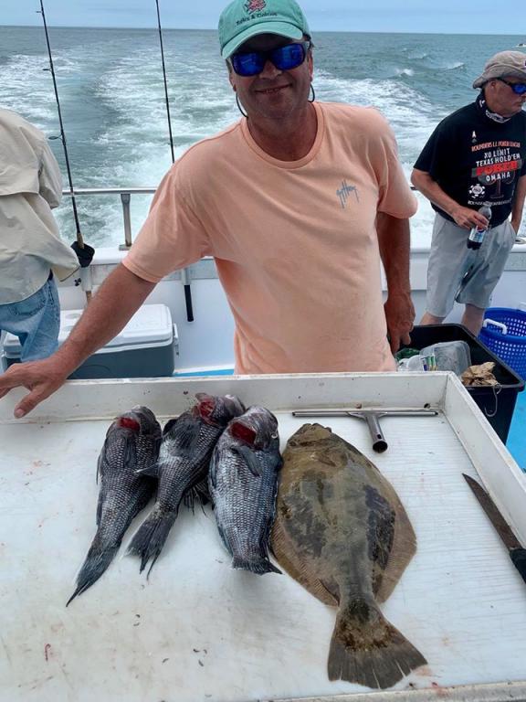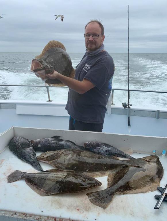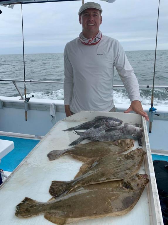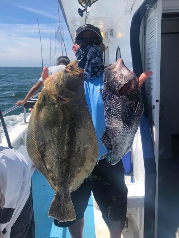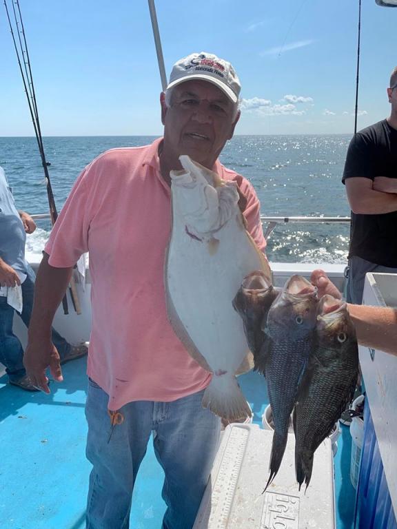 ![]() Onboard the Miss Montauk II ~ Dave had today’s pool Fluke! Everyone had SeaBass, some had Fluke.
