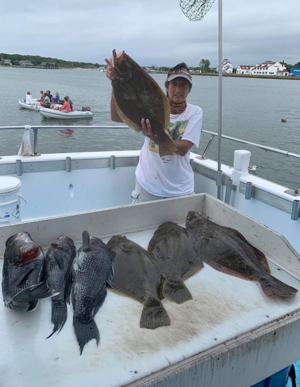 ![]() Onboard the Miss Montauk II SUNDAY ~ Lin had today’s pool winning DOORMAT Fluke weighing in at 10.02 lbs ~ Fluketastic! Runner up was Jae with his 9.54 lb slob ~ Awesome!