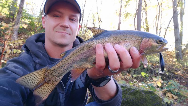 Just about back at the car I hit the spot where I lost the first fish. Couple casts later I landed a nice thick bow! Probably a leftover spring stockie but was starting to color up and had nice pink fins. Perfect way to end a day of trick or troutin!!!!
