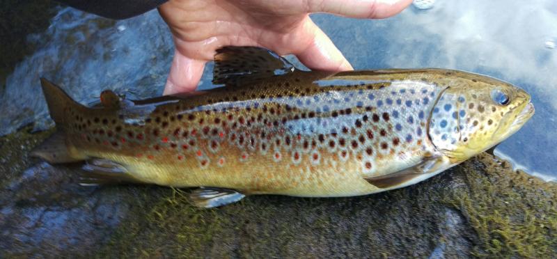 Nothing for the next 40 mins or so until I made my way further from the starting point. Hooked 2 browns in short order. One was 15ish and the other was the biggest of the day at 16.5 with a nice full belly!!!