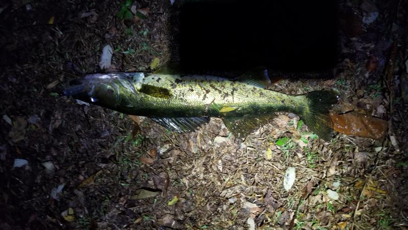 Made my way upstream hitting openings where I could when my keitech was annihilated by a TOAD. After a good tussle I clicked my head lamp on to reveal a nice fall beast walleye. Bit of a task landing her but made due. Quick pics and revived her until she threw water in my face...and it was cold last nite. Watched her eyes fade into the depths and took a breather. Checked my leader and retied for good measure. Moved on a caught prob one of the smallest walleye I've ever hooked. Thing was less than 10" lol.