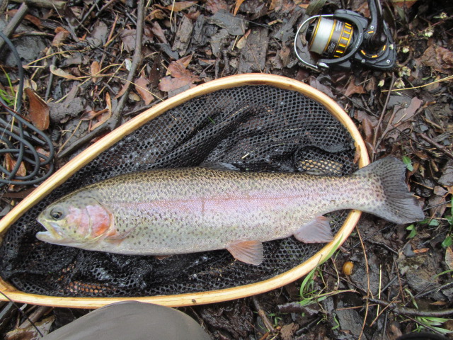 7 am started up by the Arches in High Bridge, morning air temp 38* and a nice steady rain. The rain was more of a nuisance than anything else. Couldn't scare a fish out of the Arches but did get a nice one at the Gronsky hole.