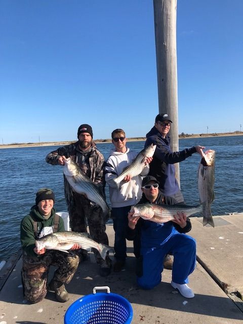 This morning we had the Mike Pateski charter out for some stripers. Put out the mojos and had steady action with keepers to 20# and shorts coming into the boat right away. Once the tide died we found some bird life and broke out the light tackle. The guys went to work with the jigs and released another 50-60 shorts before calling it a day.
