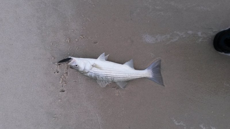 Started out in seaside throwing needles on light tackle to the many short bass that have taken up residence at the beach, picked up 5 bass no bigger then 21" and missed many many more. The beach lips are chocked with these little guys, after a n hour of this I headed to the Toms river TCA. This is hands down one of the hardest rivers I have ever fished, it is littered with snags, tons of deep holes,the banks are covered with Briar, the water is tea colored asnd its only about 20' wide at best. Anyway walked about a mile throwing jigs and picked up 3 rainbows that have picked up the tea colored hue of the river.