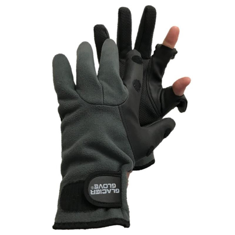 I have settled on a pair of commercial,type PVC gloves that are lined with a synthetic fleece that does not readily absorb water and your hand moves in and out even when wet . Keep dry wipe rag attached to my tackle bag .