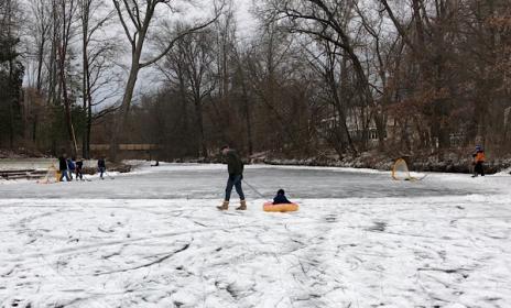 You are right, the UC cops are pretty vigilant about kicking people off the ice at most county parks but in my experience their vigilance doesn’t extend any further than what they can see from the comfort of a heated cruiser. The mighty Rahway river though, at least in Cranford, is fair game when the ice is unquestionably safe like it was today. I managed to skate from the dam near Grays/North Union all the way up to the Nomahegan footbridge and lost count of the number of hockey pickup games I passed through on the way. It’s definitely days like Today that remind me why I choose to live a block away from a river known more for flooding than recreation.