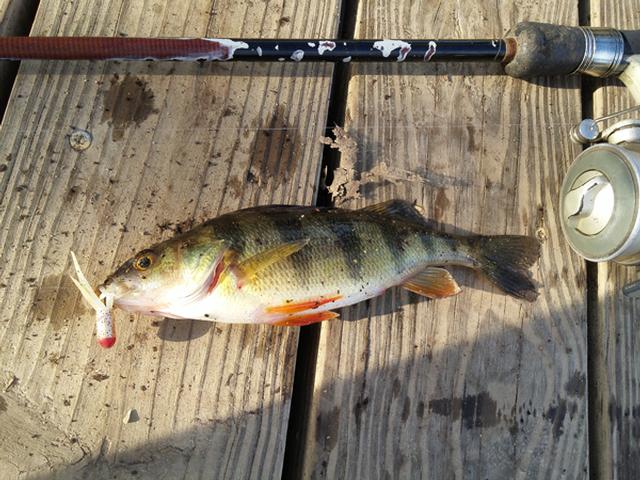 2/20/2018 caught and released 32 fish of 5 different species in 51 degree Carnegie Lake, NJ, with Dick's Sporting Goods red worms on a 1/32 oz tube jig and 2 lb test line in the afternoon. Saw an eagle catch, then fly away with a shad.