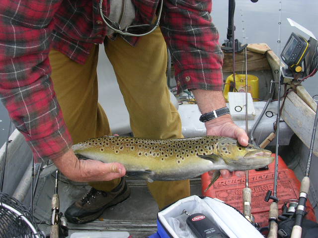 Chris PMed me about trout and I don't think that you can put an attachment in a PM so I posted some pictures here. I related to him why I think bigger trout are so scarce. Being bass anglers trout are a bonus for us and outside of RVR there aren't trophy trout waters around. Since we are C&R the size doesn't matter because they all go back but many anglers can't release a big trout to be caught another day. I've seen a slot limit work very effectively until the fisherman couldn't stand letting go a brown trout that was shy of 22". Rainbows and tigers were stocked with no limit on size and no browns could be kept except for 1 over 22" and it made for great quality trout fishing in a lake in CT. You wouldn't believe how many 18 to 21" BT because of the 22" minimum. The State stocked a strain of German BT and it wasn't until they got to about 20" that they got thick and broad. I would catch 5 to sometimes 10, 16 to 24" brown in late Nov. to pre hard water in 3 hrs or so and let them all go. People killed it by complaining to the DEP about the size limit. Of course they lowered it to 20" and the meat fishermen loved it because lots of that class of fish were taken home and the number of nice trout went way down in a couple of years. Now the fishermen began complaining about the lack on quality fish. You can't have your cake and eat it too. The quality trout population was further diminished with the destruction of the milfoil and the demise of the alewife population about 8 to ten years ago. |