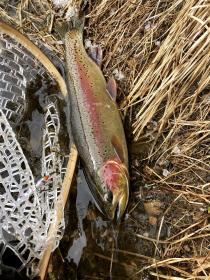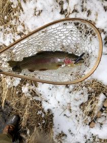 I fished the stretch of river downstream from the Holter Lake dam (which is actually north of the dam which I found very confusing). The scenery was spectacular, I met a bunch of real nice fellow anglers, and after about an hour I managed to hook a nice 20” bow on a husky jerk. The fish put up a great fight in strong current but I finally got it in the net. I never keep fish but I promised my brother-in-law I would bring home any keepers for him to cook (I suspect he didn’t think I would catch anything) so this fish ended up as dinner (for him I don’t even like fish). All in all a great (but very cold) day of trout fishing.