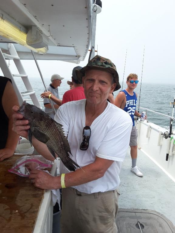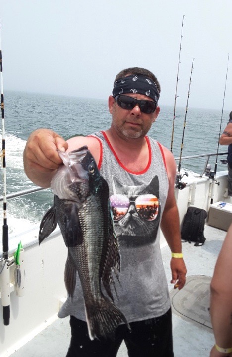 We made a good effort to catch some BLUEFISH this morning but they would not cooperate so about midday we went SEA BASS fishing. We limited the boat out with SEA BASS, had some nice PORGIES and a couple LING. It was a good day of fishing.
