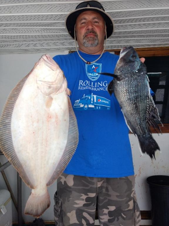 Well we finally got some wind, and some current, and with that we caught a bunch of Fluke! Plenty of nice keeper size Fluke and Sea Bass along with non stop short action. Joe Z caught a jumbo Fluke to take the pool today and Ben gets honorable mention for smoking little Bobby! Great bunch of peeps today. Thanks for the good times. We sail everyday from 7 30 AM to 2 30 PM. Don't forget to check us out tomorrow night for the Long Branch fireworks! 7 30 departure. Boarding starts at 6:30. Come on down and enjoy the day with the crew on the Capt Cal.