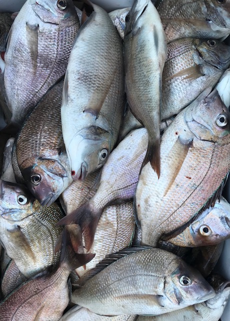 It was red hot Porgie action today for the Bret Albinson charter---drop and reel fishing....
