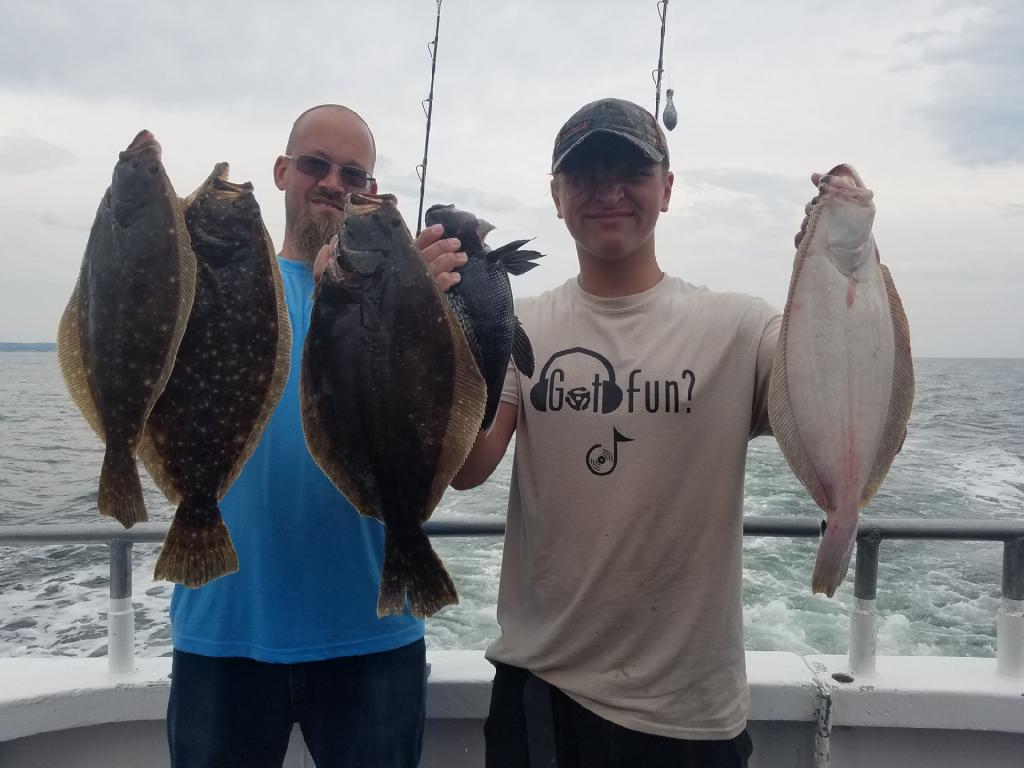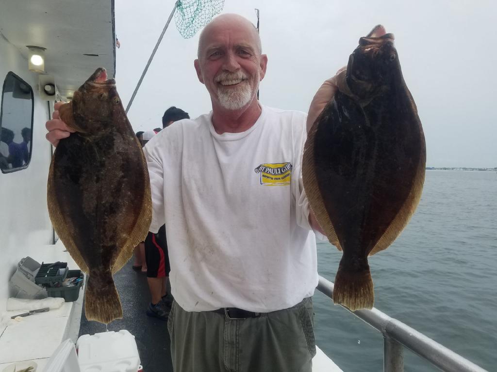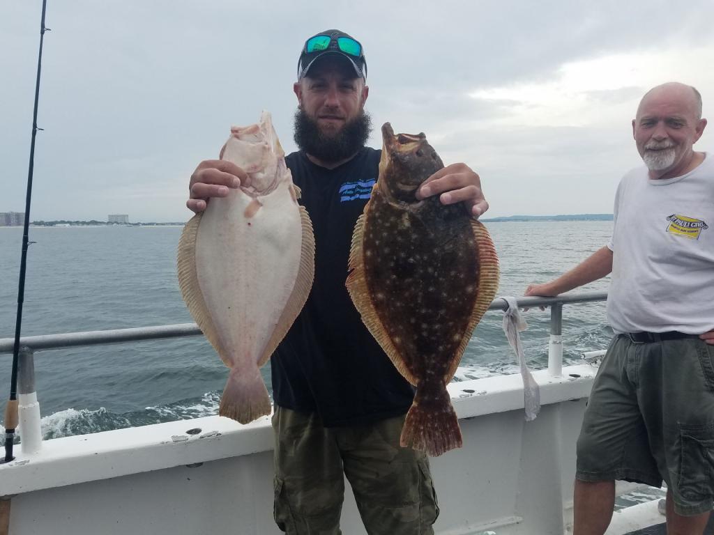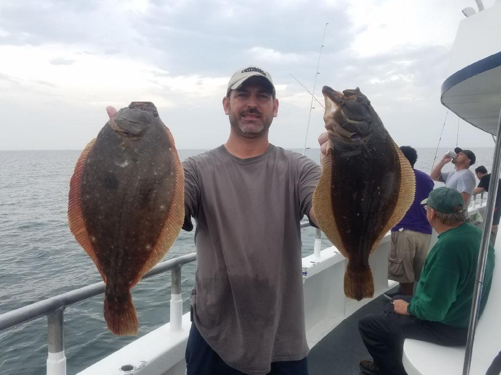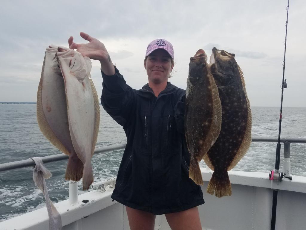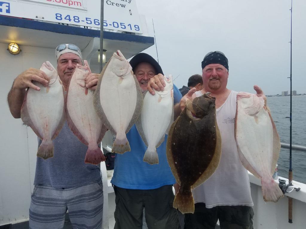 The weather was not that great this morning…Thunderstorms and rain in and out but the nice fluke were there and were chewing..Guys and girls had limits..Even some rental rods had a limit.While not everyone capitalized it was a good spread of fish around the boat…In shallow in the hard bottom..Check out some pics…Game plan for tomorrow is get back on em!!! So come on down..weather is gonna be great….See ya tomorrow!!!