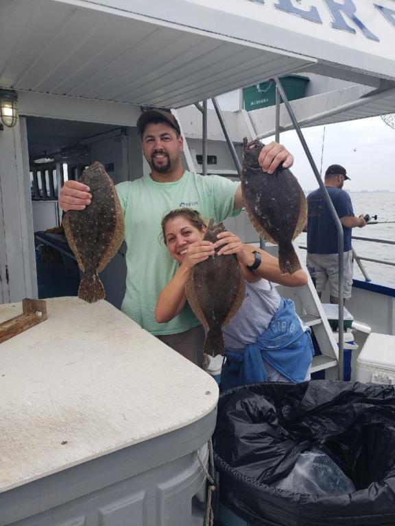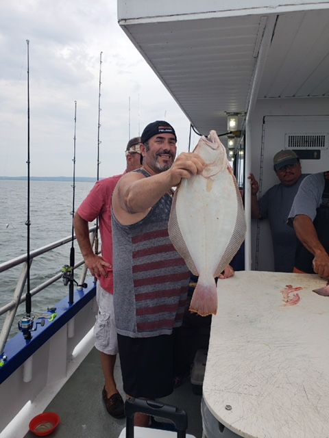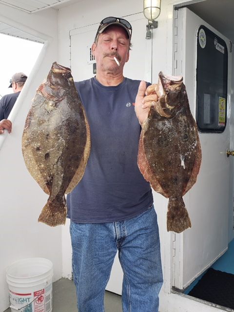 Hey Gang. We sailed with a pretty nice size crowd of regulars today despite some early thunderstorms. I made the first couple of drifts in-between the channels and we landed a few nice keepers. We bounced around a bit and ended up finding a nice patch of fish that we stayed on until it was time to go home. There were a few limits onboard with a nice spread of keepers and some with just shorts. The pool fish was a nice 6lb fluke landed by Prowler regular Vic. Final count was 32 keepers.