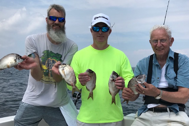 Today was another day of drop "n" reel Porgy fishing for our 3 man charter of Pop John and sons John and Tom.