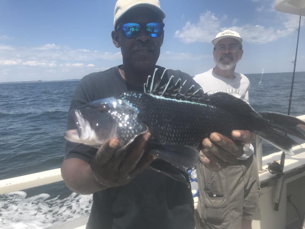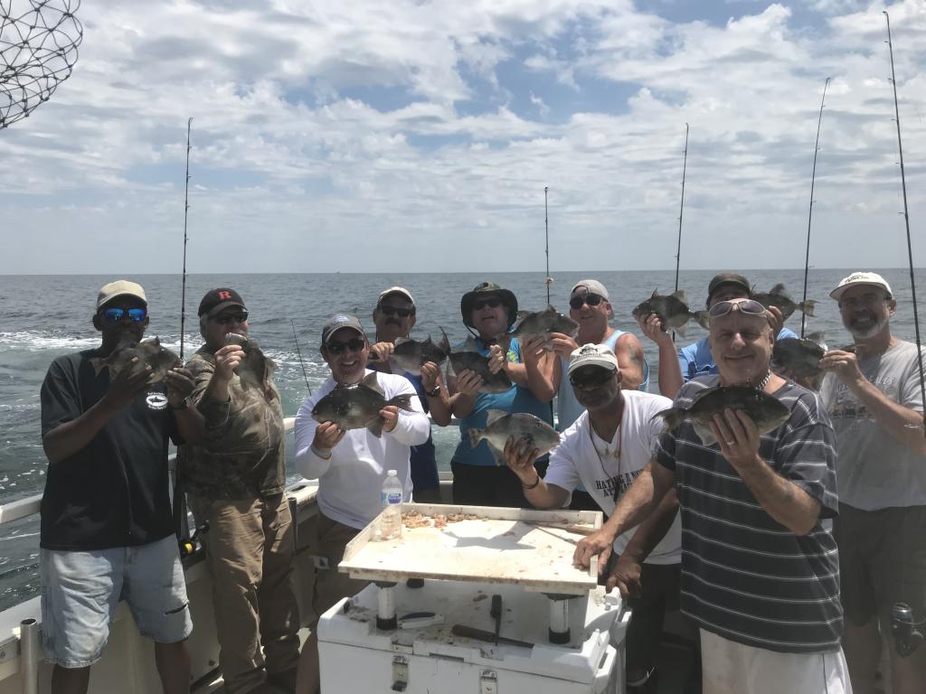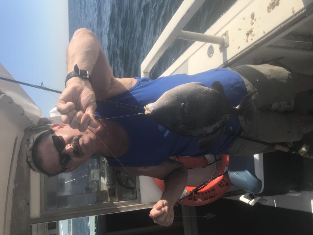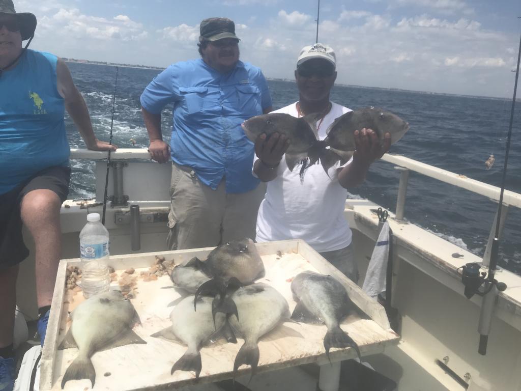 It is 11:45 in the morning, and we are done trigger fishing, we have a High hook of over 25 Triggerfish, up to 5 pounds everyone on the boat has as many triggers as they wanted, most of the fish were 3 pounds or better, and we are going to try to catch some Seabass , and fluke. We also had an excellent catch porkies, large fish with quite a few jumbos mixed in , The best day or trigger fishing yet this year. We’re lucky to have these fish now God knows how long the’rr going to be here, so if you would like to come fishing for these fish , do it as soon as possible no.one knows when they’ll be gone. We have plenty a room tomorrow , and Friday we will be fishing for these on Thursday, and Friday as well as the rest of the week, we will be going right now to try for some Seabass and some fluke, to round out the couch. Photos will be posted later here and on Facebook call for information and reservations