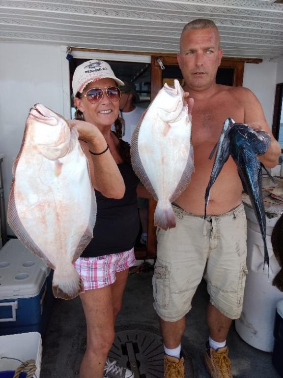 Hey guys! Well today was a grind for us. A couple here and there on each stop. Not the best fishing but not a bad day by any means. We had a few guys with limits of Fluke and Sea Bass, a couple with Fluke limits and some with one and two. Of course there were guys without any keeper size Fluke. Everyone caught fish and had a good time as always. Martin from Rochester NY took today's pool along with a limit. Congratulations! We sail everyday from 7 30 AM to 2 30 PM. The boats always lit up by 5-530AM everyday!