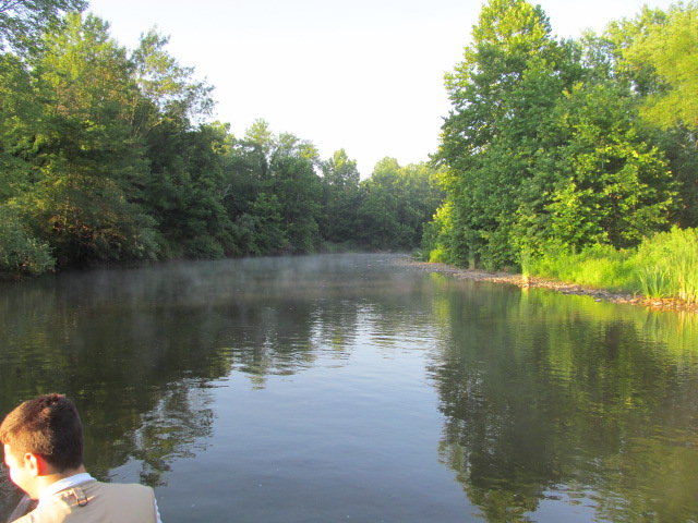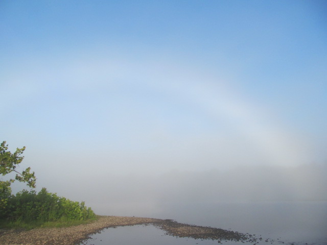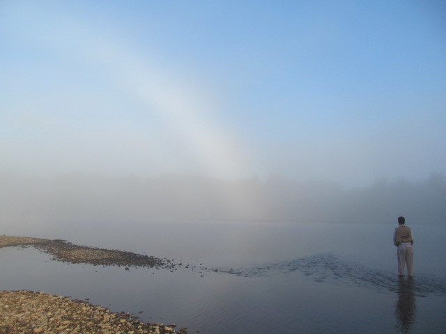 Got a few good early morning photos of a mist rainbow that appeared above the "lake" section of the river.