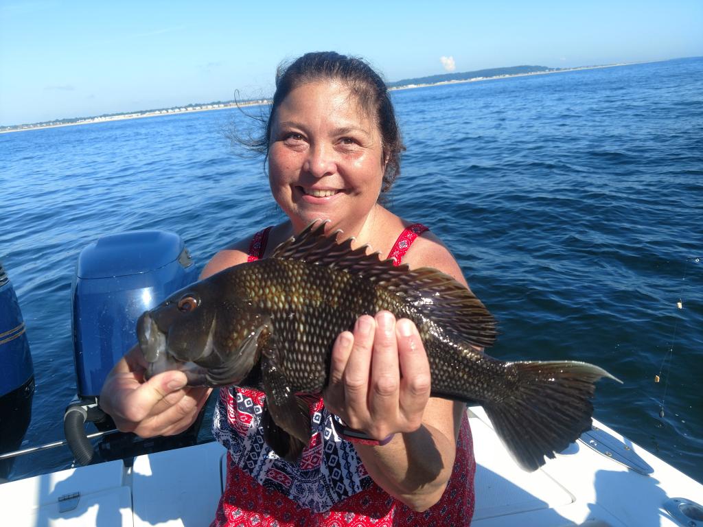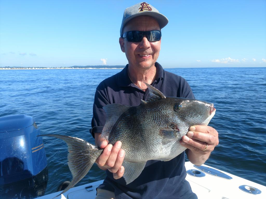 Had Mark and his family on the boat today for some bottom fishing. Not the lights out fishing we saw in previous trips but the fish are there. Just not chewing real good today. Made many moves and wound up with some nice Triggers, Porgies and SeaBass but it was a grind. A pleasure to fish with them!!