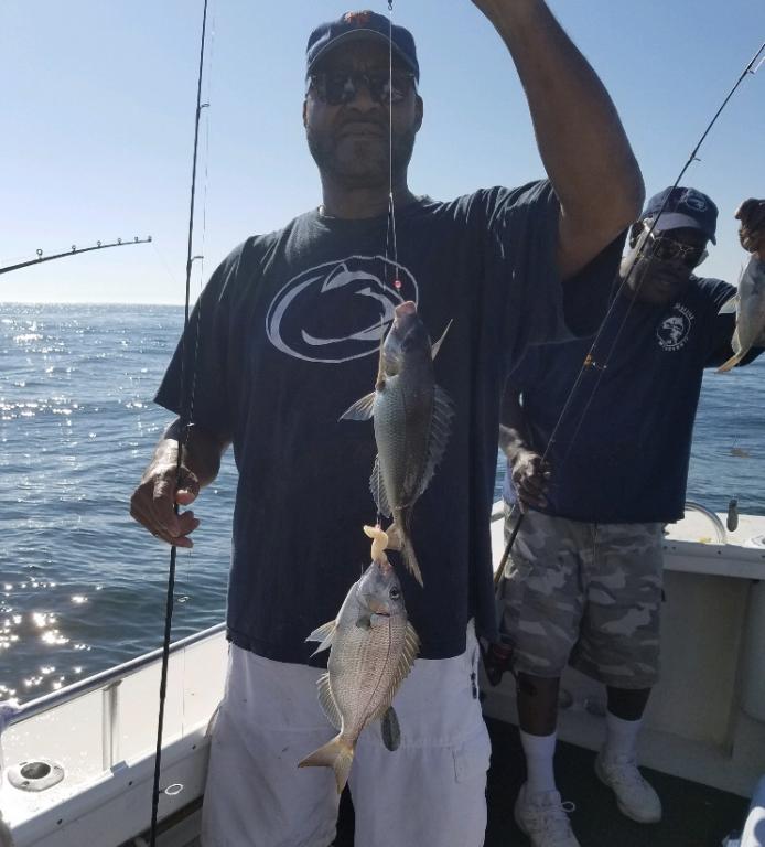 FRIDAY JULY 27 - 6 AM JUMBO PORGIES ETC. - FEW SPOTS REMAIN ***** SATURDAY JULY 28 - 2 PM JUMBO PORGIES ETC. - FEW SPOTS REMAIN SUNDAY JULY 29 - 6 AM JUMBO PORGIES ETC. - FEW SPOTS REMAIN CLICK ON DOWN DEEP FOR OUR SCHEDULES THE HEAVIEST FLUKE OF THE 2018 SEASON WILL WIN A CUSTOM WORK OF ART ROD. DON'T FORGET TO ASK OUR CREWS FOR YOUR TICKET TO WIN FREE TRIPS ABOARD BOTH BOATS. JUST OTHER WAYS WE SHOW OUR THANKS BESIDES SAYING IT ALL BAIT, BASIC TACKLE, ICE, RODS, KEURIG COFFEE & BOTTLED WATER PROVIDED. Come out, load up, book now.