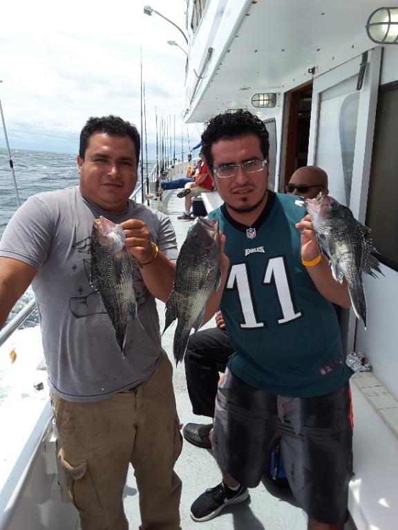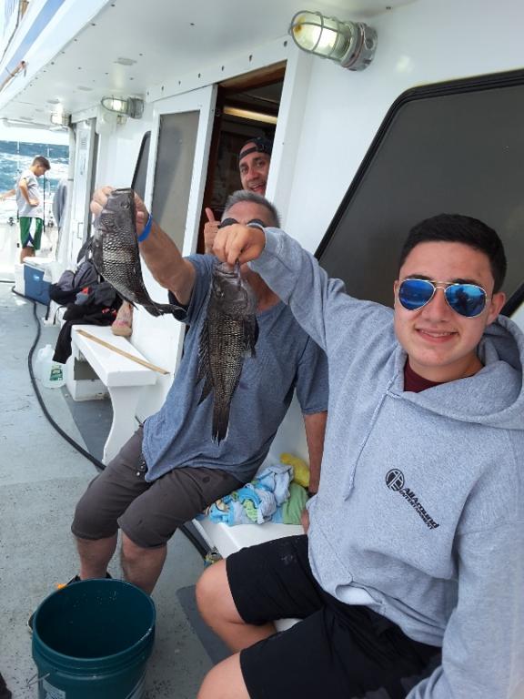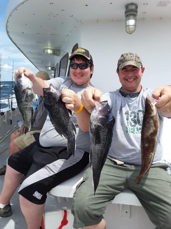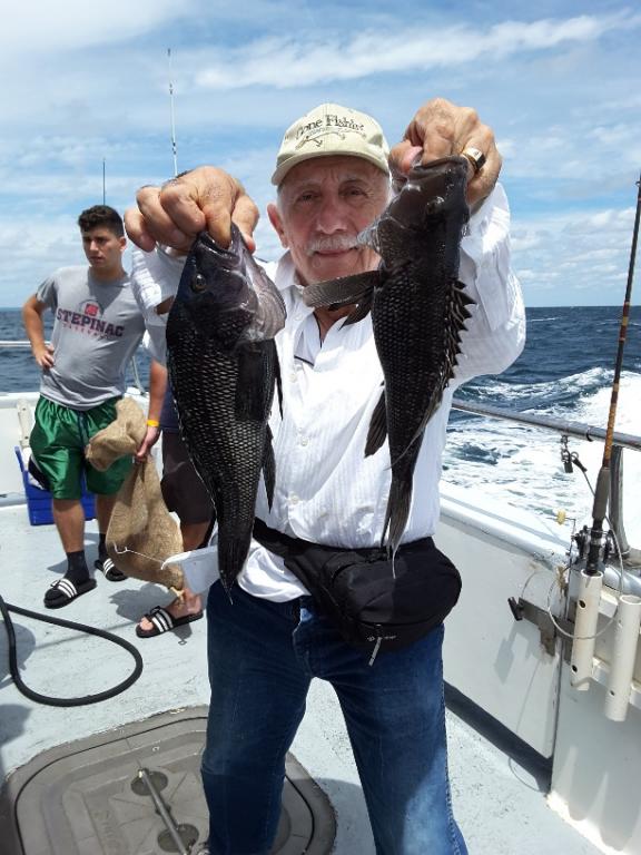 It was pretty nice out there earlier this morning but the ocean got really cranky very fast. We did catch quite a few SEA BASS, some LING and a nice 5lb. FLUKE so it was a VERY GOOD day of fishing.