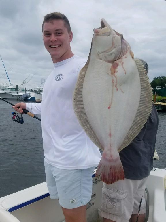 So that bigger fluke Andrew caught was literally stuffed to the gills with shredder blueclaws....you can see the bulge its stomach in the picture. It shows the predatory instinct of the fluke for it even bother with a peanut bunker. When I cut that fish I have never seen a fuller stomach. Most often they will purge when hooked but not this guy. |