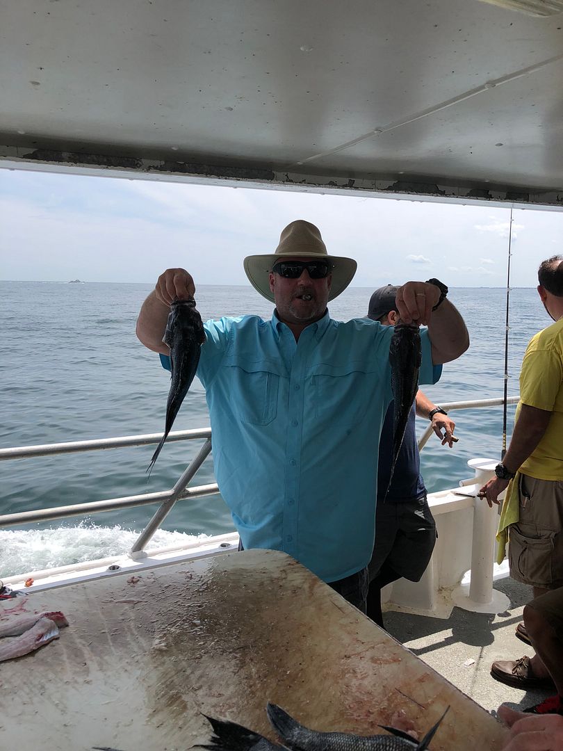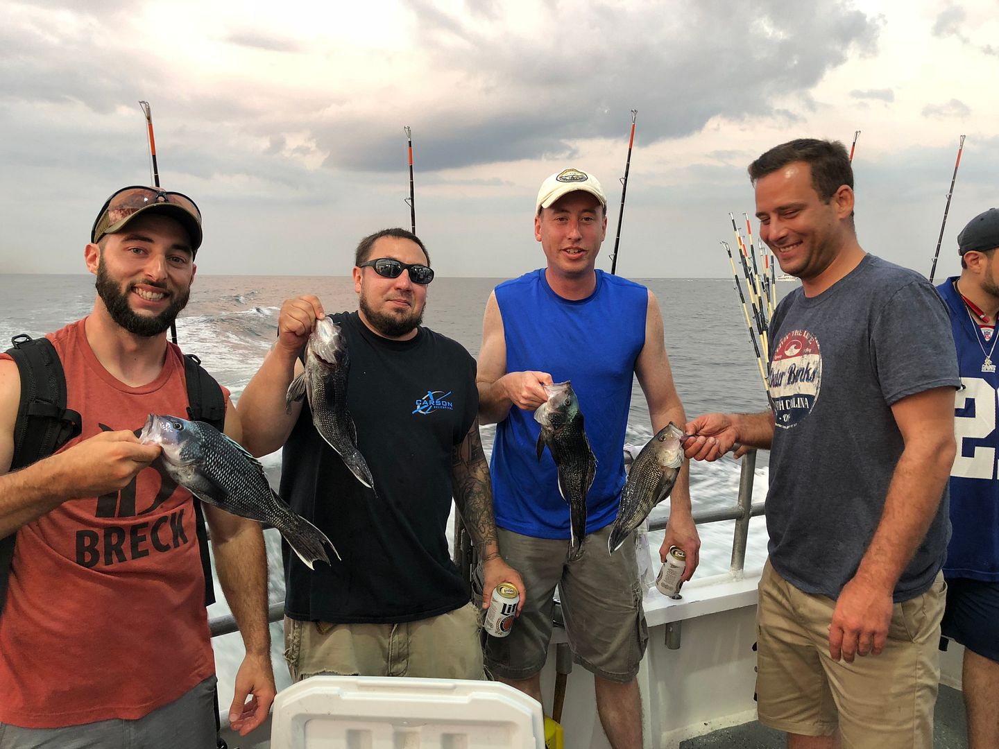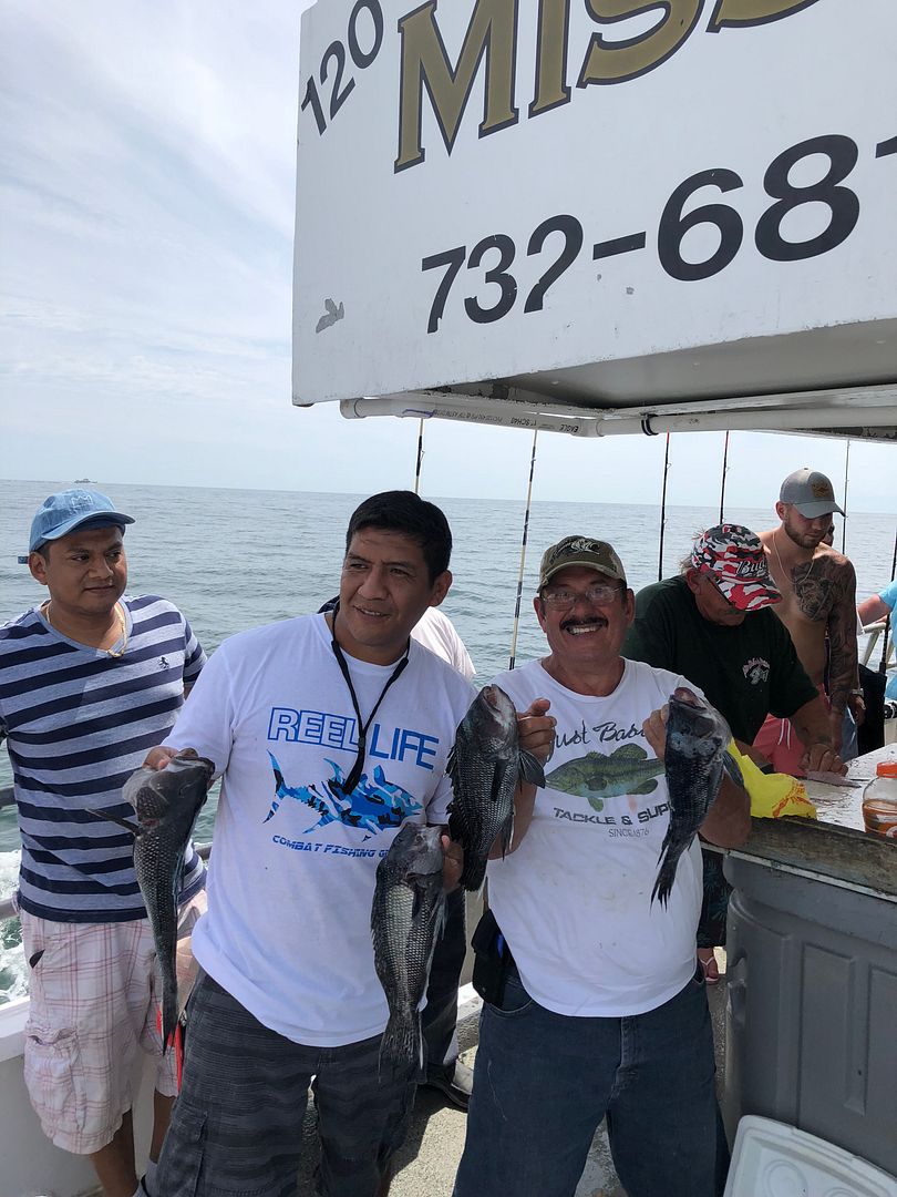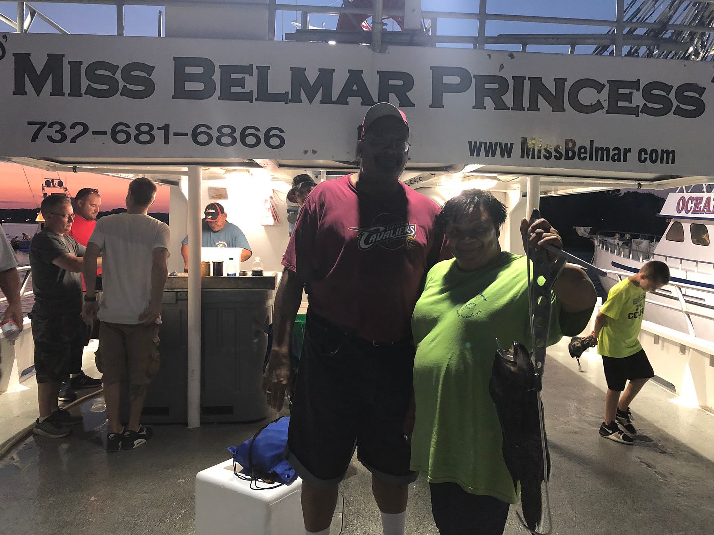 Yesterday afternoon’s trip turned out to be a great family fun fishing night! We had fantastic weather and caught plenty of fish! We pulled in lots of sea bass with some fluke and ling, as well. A great time was had by all anglers on board! This morning, we fished northeast of Shark River Inlet. Once again, we had a great day of bottom fishing. There was lots of action all around the boat, with plenty of keeper sea bass. We also caught a good mix fluke keepers and throwbacks. We even got lucky and picked up a few little blues on some clams that were meant for the sea bass! We haven’t had good blue fishing in a couple weeks, but hopefully they will return any day so we can start targeting the blues in the mornings again. Until then, we hope to continue catching lots of sea bass! Sailing daily for Stripers & Blues from 7:30 A.M. – 2:30 P.M. and every afternoon for Fluke & Sea Bass from 4:30 P.M. – 8:30 P.M. Join us as we bottom fish and mammal watch and then catch the most stunning sunset on the ride home. Bring your friends, family and children. This trip is fun for all ages and a must for everyone! The Miss Belmar Princess is the largest, fastest and cleanest fishing boat in Belmar. With Miss Belmar’s 3 engines and a total of 2,100 horsepower, she is the first boat to the fishing grounds every day, and we guarantee it. No other boat comes close. Try us and you’ll see why! Yesterday afternoon: ![]() ![]() ![]() ![]() ![]() ![]()