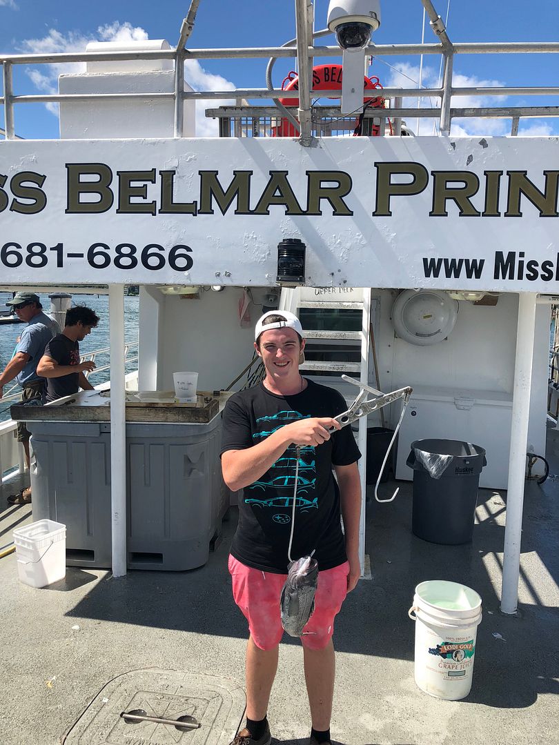 Today was a great day despite the weather, it was very rainy but not too rough on the water. We fished out east of the inlet again, we had a slow beginning but it got better as the day went on and the weather cleared up. We drifted for a while and read plenty of fish, they just didn’t want to cooperate. We anchored up to see if we’d have better luck that way, but it didn’t make much of a difference. The second half of the day, we were able to catch some nice slow drifts and pick from the bottom. We caught a good amount of sea bass with some fluke mixed in. Today’s pool winner was