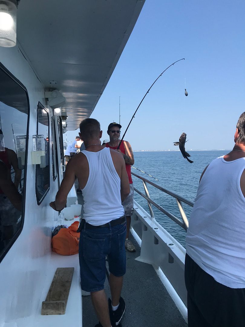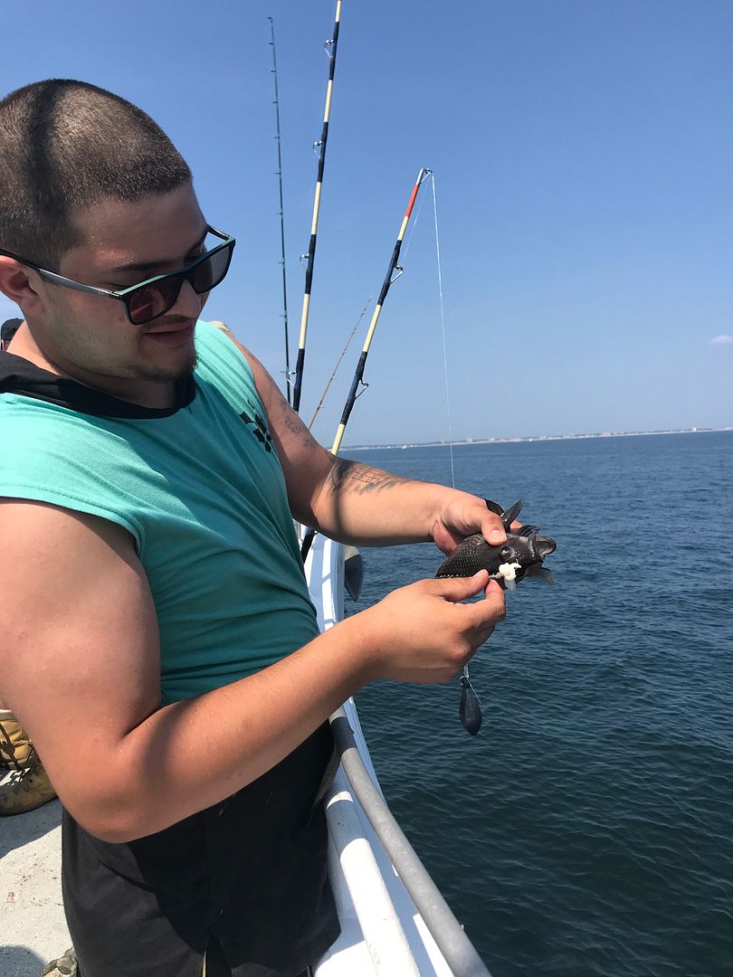 We had good sea bass fishing on our family fun trip yesterday evening. We also caught a lot of mackerel in the last hour of the trip, then finished the night off with a great fireworks show off the beach in Point Pleasant. Our pool winner was Nathan Kasak from PA, he caught the biggest fish of the day which happened to be a skate!! We started out the day along the beach this morning, north of Shark River Inlet. There was a good amount of bird life, where we saw lots of surface action with small blues. We jigged for the blues and mackerel and did pretty well for a while. About mid-morning, we lost the blues so we headed east to do some bottom fishing. We did really well with the sea bass, with some fluke and ling sprinkled in. It was a great day overall with awesome fishing and excellent weather! Sailing daily for Stripers & Blues from 7:30 A.M. – 2:30 P.M. and every afternoon for Fluke & Sea Bass from 4:30 P.M. – 8:30 P.M. Join us as we bottom fish and mammal watch and then catch the most stunning sunset on the ride home. Bring your friends, family and children. This trip is fun for all ages and a must for everyone! The Miss Belmar Princess is the largest, fastest and cleanest fishing boat in Belmar. With Miss Belmar’s 3 engines and a total of 2,100 horsepower, she is the first boat to the fishing grounds every day, and we guarantee it. No other boat comes close. Try us and you’ll see why! Our pool winner yesterday evening was Nathan Kasak from PA! ![]() ![]() Pictures from today: ![]() ![]() ![]() ![]()
