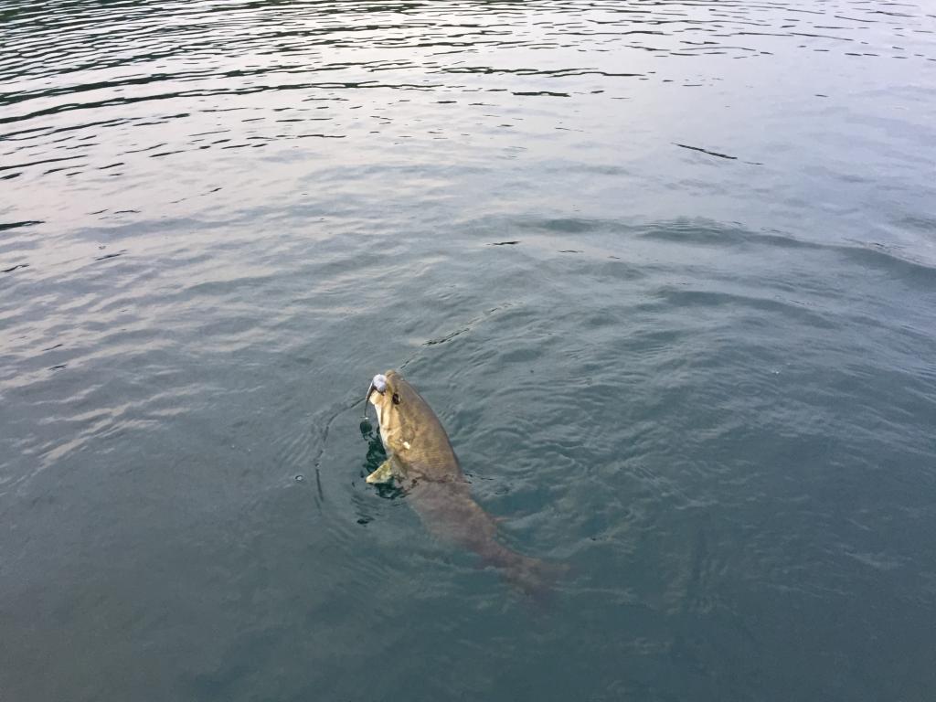 No bait = lots of fish on lures. I know Crispher and the gang been getting them fishies jigiing. Caught around 13 fish. Lost prob as many as I caught using ultralight gear. Some nice smallies. Depth not real deep FF is broken.All smallmouth exception if 2 LM’S and a large CatFish. it was either a white catfish or a channel. Took me around 8 minutes to get her to the net. All fish released. East wind and fishing was Epic.