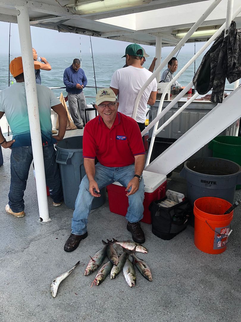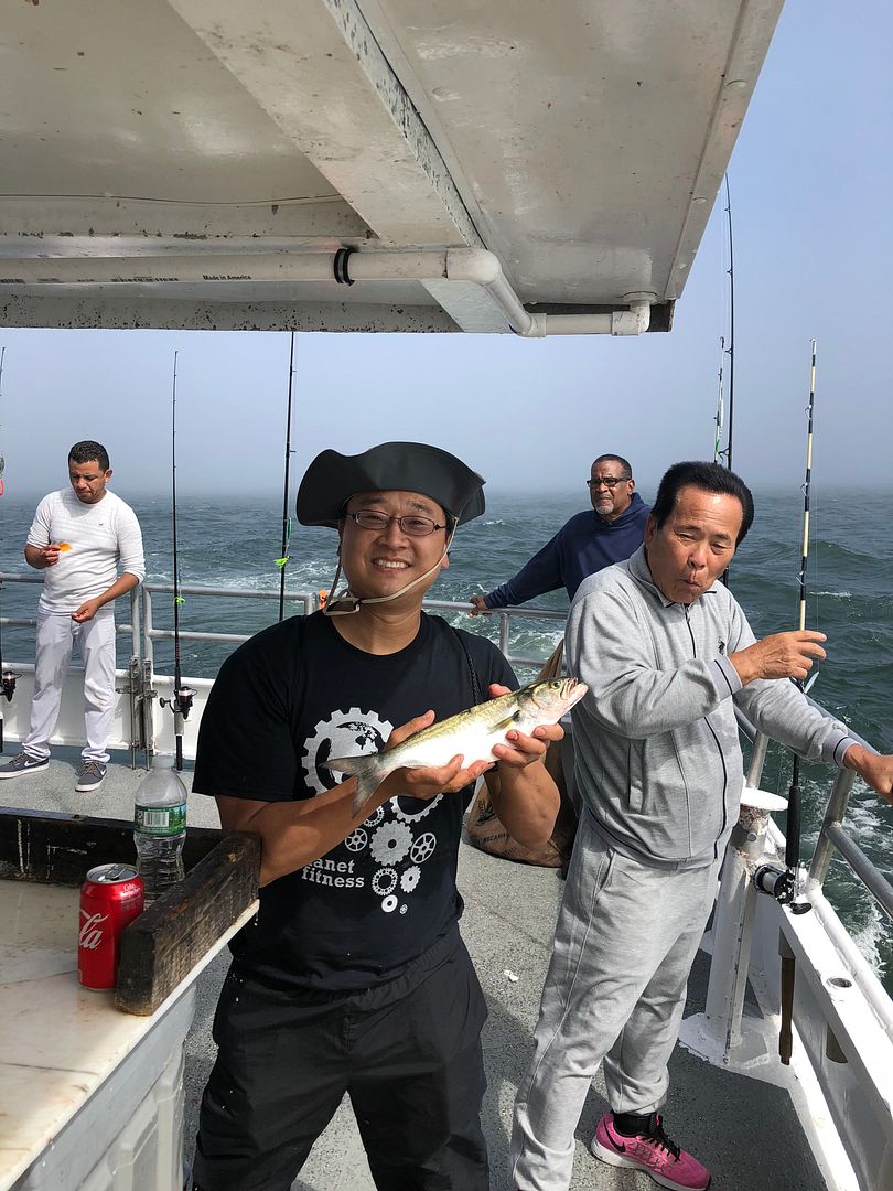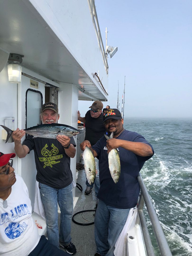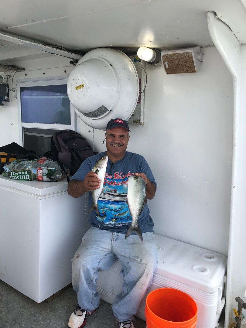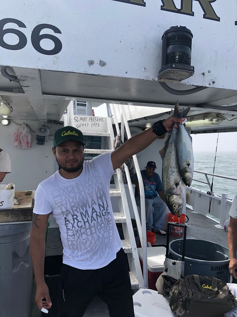 This morning, we fished northeast of Shark River Inlet. We got off to a slow start and it took a while to find them, but by mid morning, we were picking away with shots. Fishing continued to only get better as the day went on. There were plenty of fish with many catching their limit of blues today! We also caught a few albies and some jumbo porgies. Diamond jigs worked the best. Especially ava 27’s.