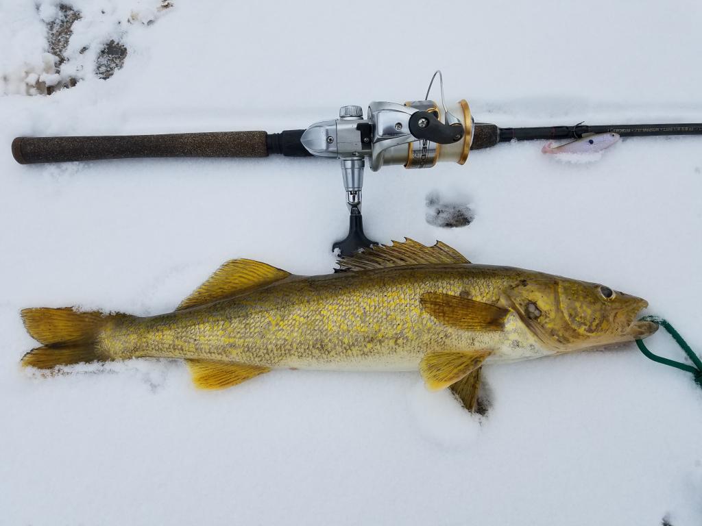 Hit the river today in search of the elusive winter walleye. Hit up a spot that I reconed last time I was out. This spot gave up some perch and a couple of smallies. Well, today the water was down about a foot since I was last out and the Eddie's I like were ice covered. No perch and smallies today but I did get what I wanted. Fishing the seam water was able to connect with a nice 20 class walleye. Fished a couple more spots but no one home. Might have to give up on the river until the spring thaw as I'm sure the coming cold weather will lock up all my spots.
