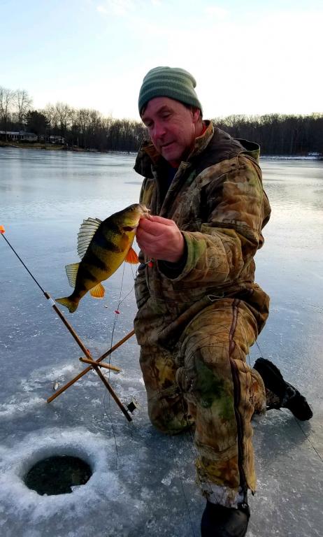 ....and the hard sweet water did not disappoint Saturday and Sunday.... neither did the brats ...beers and German pear schnapps.... Solid 7 inches of ice and bites all day long....