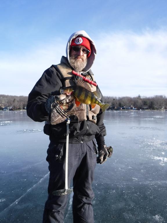 i went to the big pond today and fished with some friends in a whiteout today. i was out yesterday afternoon as well. we caught perch, sunnies, crappies and a couple of slime darts. my friends fished jigs and tip ups while i just fished jigs. we were in 5 to 6 fow, again the fish were glued to the bottom.. one of the slime darts was just over 22" it was caught on a tip up. with cold temps in the forecast we should hopefully close up some of the open spots in the middle of the lake however the winds that are right behind the snow we got will not be helping at all. the ice were we fished was 6" plus in some spots the ice was a little thicker than 6" but not by much. we got blown off the lake by the high winds and blowing snow the holes would fill in real fast making it hard to keep the holes clean... tight lines and many flags to all that venture out