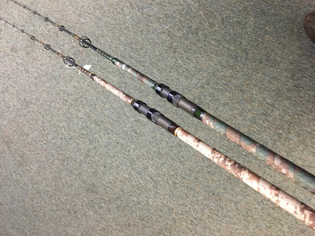 Festooned with military-inspired details, here are medium power spinning rods- excellent for stripers. One Stormin’ Norman tan and the other Commando green. Nylon web grips unlike anything else you can find. It’s the happiness of fishing, only weaponized.