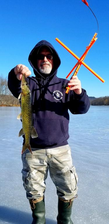 6 inches of Ice. We worked 8 tip ups which caught all the fish....could not get a hit jigging. Hoping for ONE MORE weekend !!! Great bait from Andover including those baby suckers !!!!! Thanks Garrett !!! |