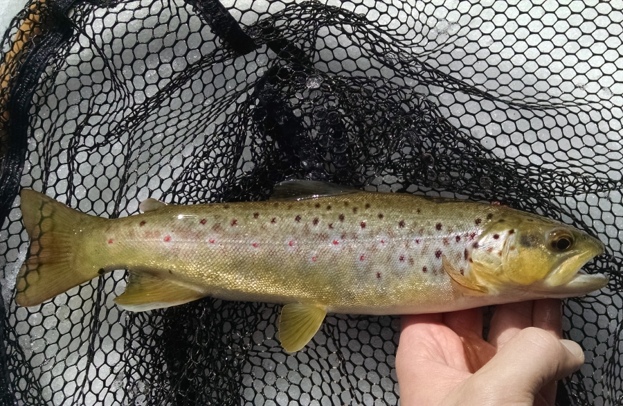 Good news; I kept the same jig on all day, didn't lose it in any underwater roots, stones, or branches and could virtually toss it anywhere. Bad news; witnessed a few trout not hook up, and felt a lot of "nibbles" and hits that didn't result in hook ups. At the last hole (always save the best for last) was creek chub gardens. I hook into one chub but very shortly a sharp jerk happens and im off. I then figure out a big brown is sitting on the bottom of the hole, T-boning the creek chub. It holds it in its mouth for quite a long time. I change to a larger jig (no weed guard), and before I cast I dont see the silvery chub anymore, nor the trout. Immediately after dropping the jig in, the brown comes out of nowhere and slams it. Unfortunately it comes off shortly. The trout and chubs I landed today were hooked right in the lip, the last bit of cartilage possible. With that, and with many missed hookups, probably a sign to make the guard looser. Any advice with weed guards welcomed ![]() ![]() ![]() ![]() |