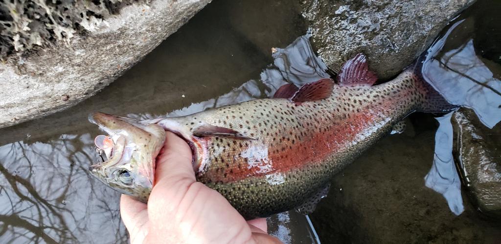 Hit up the Ramapo early this morning with a friend. Very good stocker bite today. My friend was killing it with a Phoebe I was using a CD plug and just picking through alot of short strikes and bumps. It was good to see a couple of 14 to 16 inch trout in the mix ,more than I've seen in years past. My friend kept a couple for the grill.