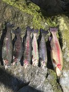 Kicked things off this Saturday at my favorite little stream in nj. Met up with duck or bleed and some others and fished the pool catching our limit and then some, blew through a jar of powercheese in no time. Lost a breeder around 830-9 ran all over the pool then took off like a rocket downstream into the tree, another angler tried netting it for me but it came unbuttoned! At least a 5+ lber🤬. Ran afterwards to meet Eddie and some of the boys for the annual pohatcong creek get together as always great time every year with this crew and the food was spot on as always. Even made a new best friend hahah heyyyy budddy!!! Lol Sunday got up early and met up at the valley to help stock with the club... Browns,tigers,Golden’s and rainbows all freshly dumped this morning. Some really nice looking fish guys, again keep in mind this club really does a great job every year with these stockings and the membership money is what makes this all possible guys... if your not a member please consider signing up..... afterwards we stuck around with a few rods and specifically targeted just lakers fished from 9-12 with three lakers to show for it. Snapped a few pics of the action the last net full we stocked today I ran into 3 feet of water and let em go pretty cool to see these things swim away especially the biggest brown I’ve seen put in today we released estimated at 6-8 lbs !!!!!! Good luck guys