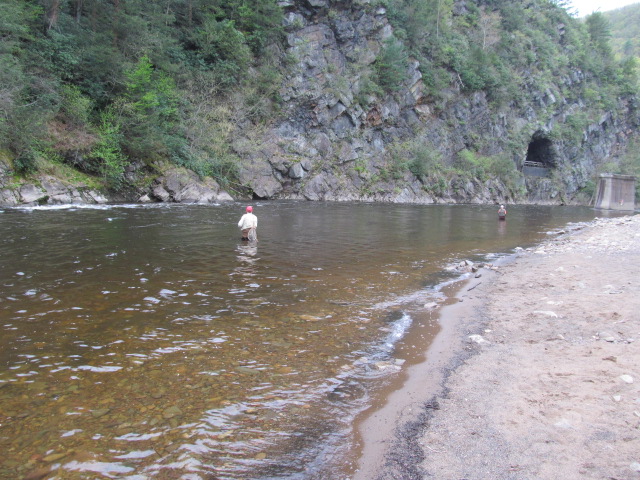 Moved down and fished Parryville where a nice trout stream came in, tough as it was ripping !! Tried Bowmanstown and I think I had a few follows there also. Wading was tough today with the water so high.