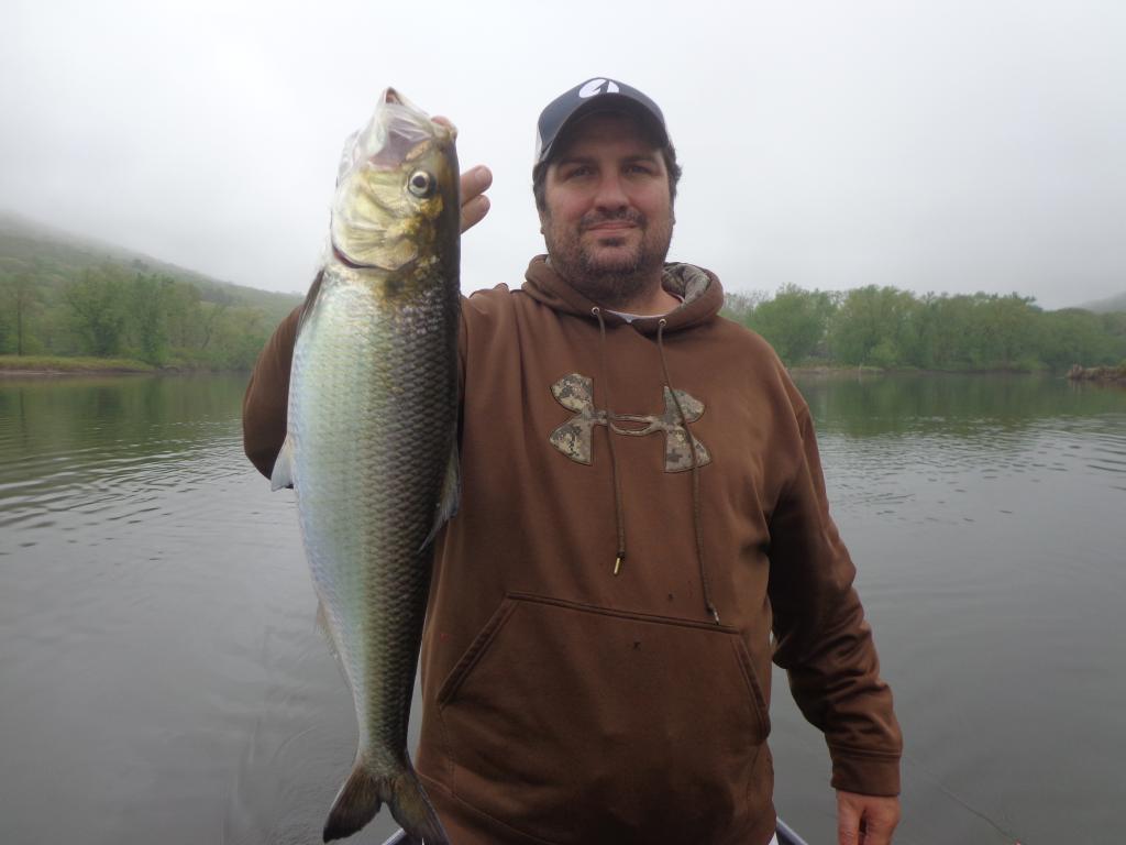 I started out fishing the shoreline of the Delaware river. I got 2 dink smallmouth bass around 10/11" on keitechs. Then I got in the boat and caught 11 shad, all good size and fought like crazy. Also had a few bites that didn't hook up. I think all but 1 were caught on spoons. Then I went to a nearby lake and caught a largemouth, a pickerel and a black crappie on a swimbait. It was a nice day out despite the weatherman saying it was going to rain.