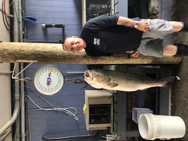 This morning we had long time customer Paul Rubee on board. Several times a year, Paul charters the boat in hopes of catching a new personal best. Today his wish came true. Loaded the wells and got right to the grounds. Had fish rolling on the surface and action right away and Paul finally got the bite he has been waiting for. After a few minute battle, we slid the fish into the net and new it was his new pb and possibly the boats. After a few pics and a quick weight, we tried to revive the big girl, but unfortunately she was spent and we were unable to get her to go. We called it an early morning bass fishing and headed in to get an official weight at fishermans den north. Finally on the scale the fish tipped the scale to just shy of 56 pounds. Congrats Paul on a fish of a lifetime. With the morning still early we decided to try some fluking in the river, but could only come up with a few shorts with lousy conditions.