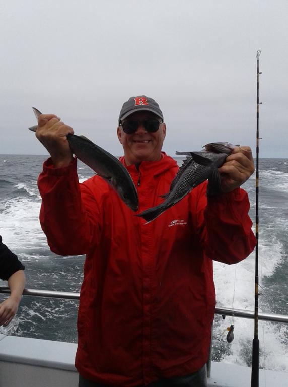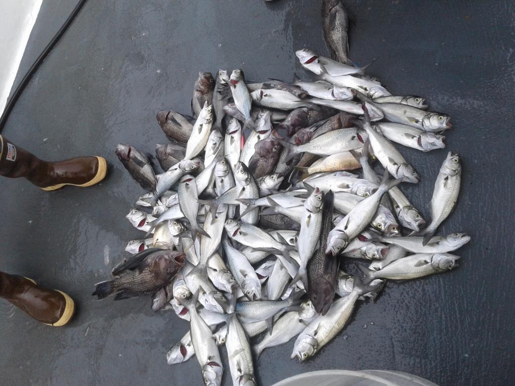 It was another nice day on the ocean in spite of the cool wind and clouds. We had near limits of BLUES which were on the small side but with light tackle, everyone had a blast. We chased the BLUES from Shark River to Sea Girt and had DECENT action on most of the drifts. We went off to the SEA BASS grounds when the BLUES slowed and had some DECENT action with the SEA BASS too, although it was much better for us with the BLUEFISH.