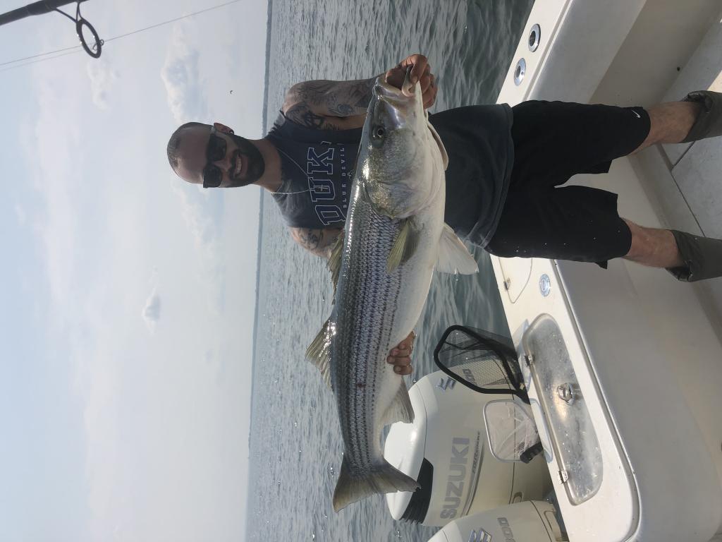 This afternoon we had the Ron Tomzak charter out. Loaded the wells and headed right to where have been fishing. Stopped on some readings and had bass blowing up the baits instantly. The guys all worked together with up to 3 on at a time landing fish to 24# (ORL) with many releases before calling it an early afternoon.