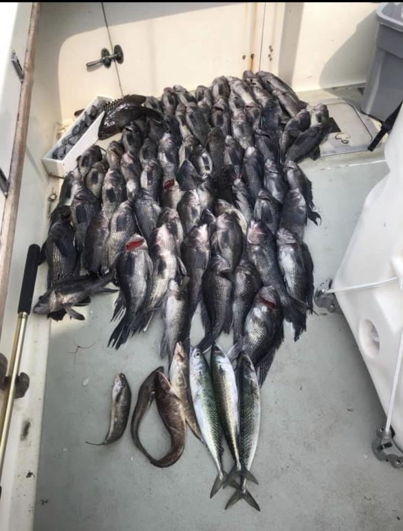 Sat 6/1/19 Seabass report A little tougher of a day, had to bounce around. We had a lot of shorts, but the keepers we had were quality keepers. Managed to get 70 keeper seabass, a handful of ling and a whiting. Sun 6/2/19 seabass report Picky morning for us. Shorts were out numbering the keepers, had to bounce around. Guys stuck with it and ended up on a good bite. Wound up with out boat limit of seabass and 42 ling. Mon 06/03/2019 seabass report Had Todd and his crew out. They wanted to try for some striped bass first, warned them that it was slow, but still gave it a try for a while. Found some bunker no takers and then trolled for a while. We then decided to go seabassing after trying for striped bass and the guys were able to get the boat limit.