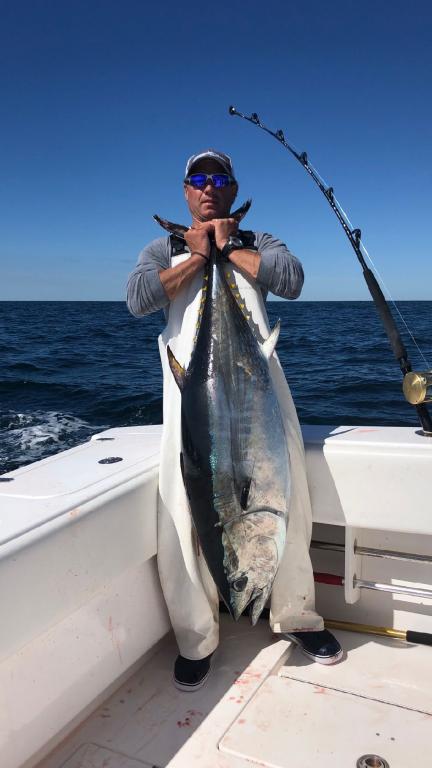 Tony and I looking to get out and back before weather turns later this week. Got to a good area with life but got slammed with little tunny. Made a move found more life this time with the right one 50" at 79lbs. Flew back to barn in time to make office hours.